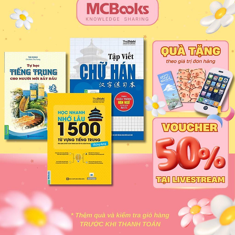 - Combo 3 cuốn sách: Bao gồm “Tập Viết Chữ Hán”, “Tự Học Tiếng Trung Cho Người Mới Bắt Đầu” và “Học Nhanh Nhớ Lâu 1500 Từ Vựng Tiếng Trung”.