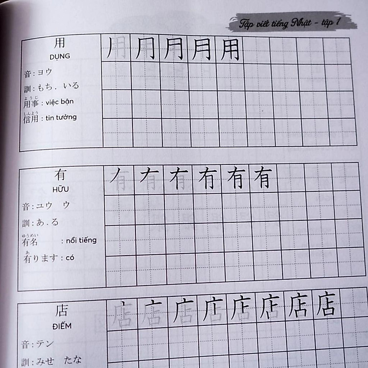 - Cuốn sách bao gồm 3 phần: viết chữ Hán, từ mới, và mẫu câu ngữ pháp.