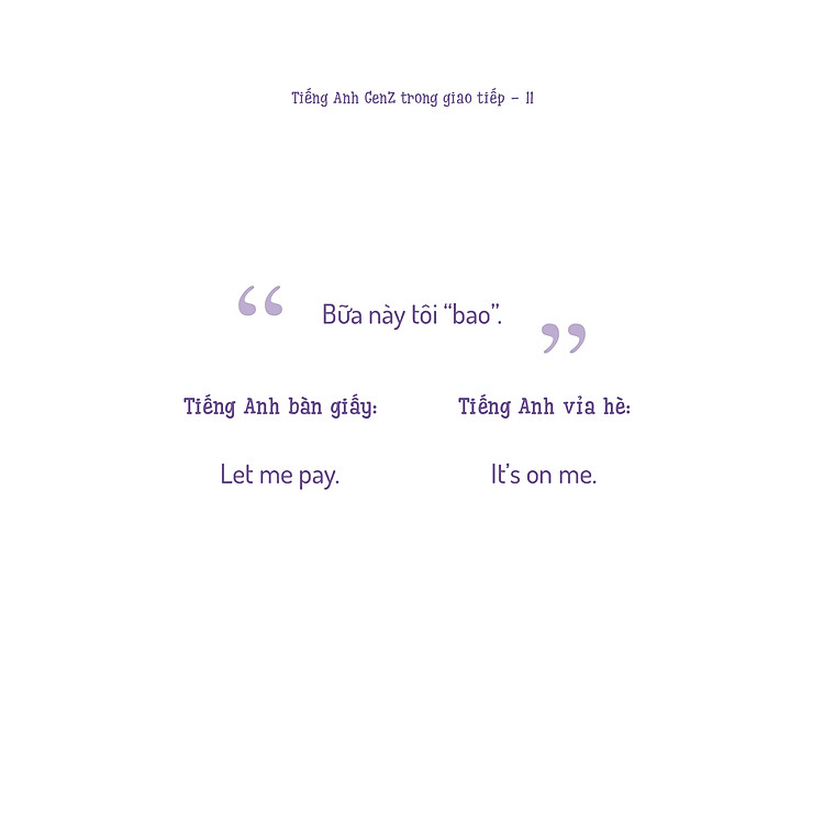 Đây mới chỉ là hai trong số vô vàn điều hấp dẫn mà cuốn “Tiếng Anh GenZ trong giao tiếp” mang lại. Khi khám phá cuốn sách, bạn sẽ ngã ngửa với những từ tiếng Anh quen thuộc nhưng lại đầy mới lạ.