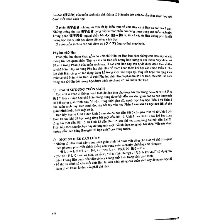 Sách in bằng giấy bóng rất đẹp, có thiệp dễ thương. 10 năm trước học Minna và bỏ cuộc vì Kanji vì không tự học nổi sách bằng tiếng Nhật. Cũng học thử nhiều sách Basic Kanji, Look and Learn Kanji nhưng không ăn nhập với Minna nên nản. Nay có bản tiếng Nhật có động lực học lại. Phần hướng dẫn và bài học chính không có nhiều tiếng việt, tới đoạn phụ lục mới có. Hi vọng những lần tái bản tiếp theo có thêm nhiều phần tiếng việt hơn.