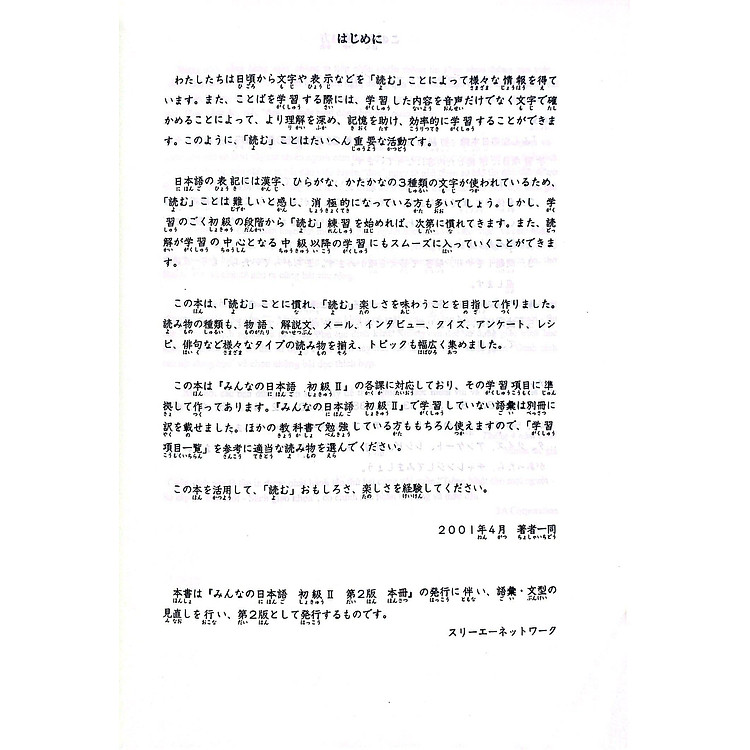 Sách nằm trong bộ Minna no Nihongo – Tiếng Nhật dành cho mọi người – Bản mới, tiếp nối cuốn “25 bài đọc hiểu trình độ Sơ cấp 1.