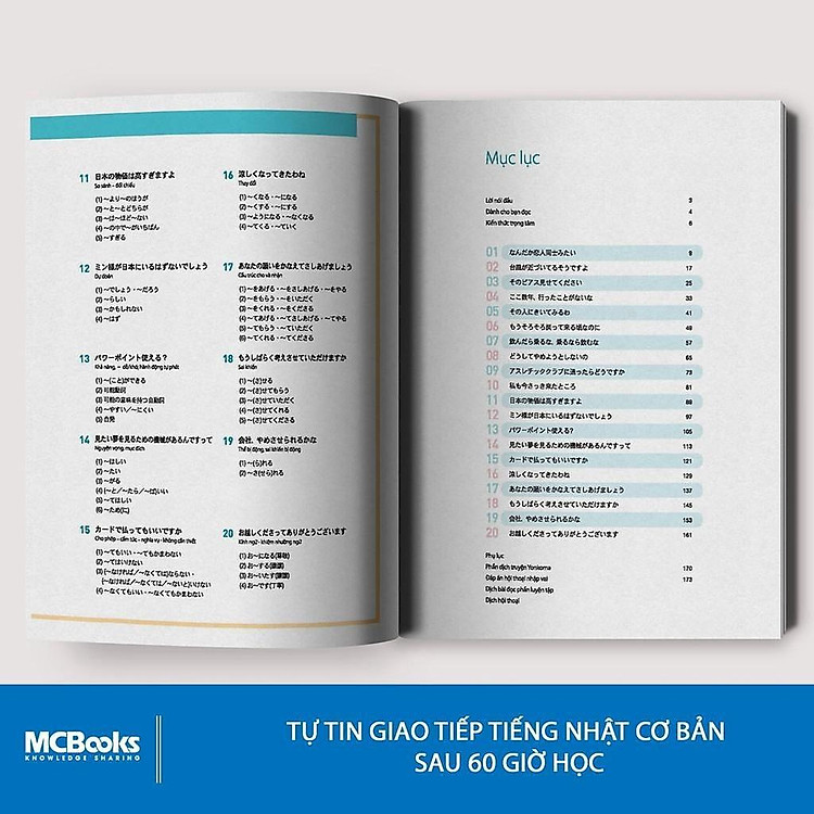 - Bao gồm 20 chủ đề thường gặp trong giao tiếp với ngữ pháp trọng tâm và mẫu câu chính.