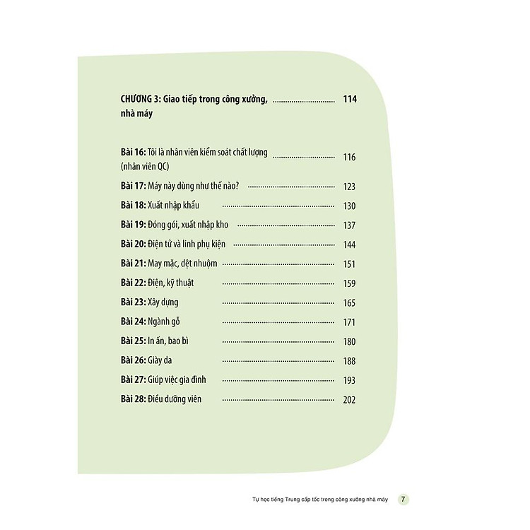 Cuốn sách “Tự học Tiếng Trung cấp tốc trong công xưởng, nhà máy” ra đời cũng vì mục đích đó. Với các chủ đề đa dạng, từ giao tiếp thông dụng tới giao tiếp theo chuyên ngành, cuốn sách sẽ phù hợp cho nhiều đối tượng khác nhau, đặc biệt là những người bận rộn muốn học tiếng Trung có trọng điểm, tiết kiệm thời gian và có thể ứng dụng ngay trong công việc.