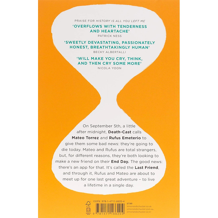On September 5th, a little after midnight, Death-Cast calls Mateo Torrez and Rufus Emeterio to give them some bad news: they’re going to die today. Mateo and Rufus are total strangers, but, for different reasons, they’re both looking to make a new friend on their End Day. The good news: there’s an app for that. It’s called the Last Friend, and through it, Rufus and Mateo are about to meet up for one last great adventure – to live a lifetime in a single day.