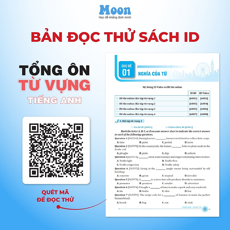 - Sách Tổng ôn từ vựng tiếng Anh cô Trang Anh Moonbook dày 700 trang, gồm hơn 10.000 câu bài tập.