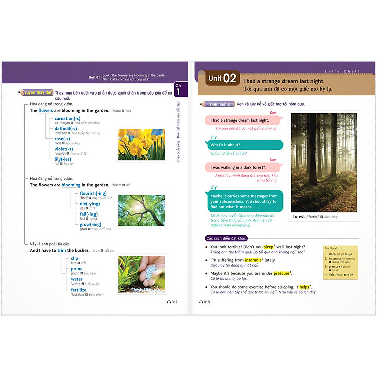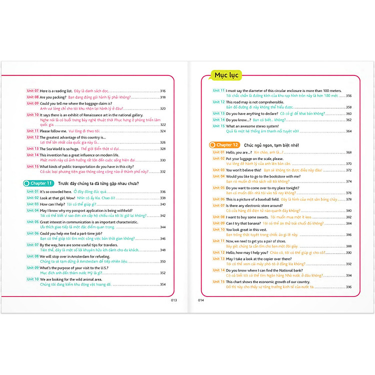 - Cấu trúc bài học: Mỗi bài bắt đầu với tình huống, kèm theo các cách diễn đạt liên quan và từ/cụm từ mới.