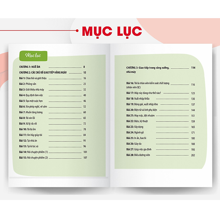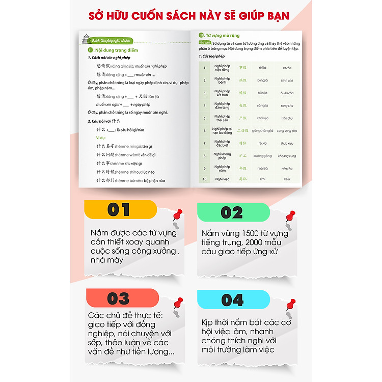 - Gồm tình huống và mẫu câu thực tế hữu ích cho cuộc sống công xưởng.