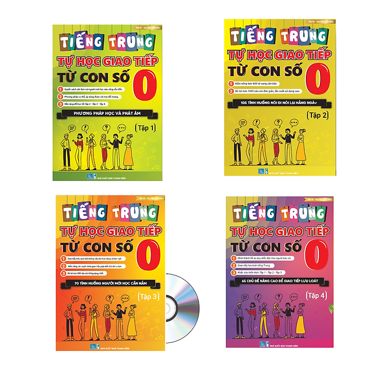 - Tên sản phẩm: Combo sách “Tự học tiếng Trung giao tiếp từ con số 0” bao gồm 4 tập và 1 DVD.
