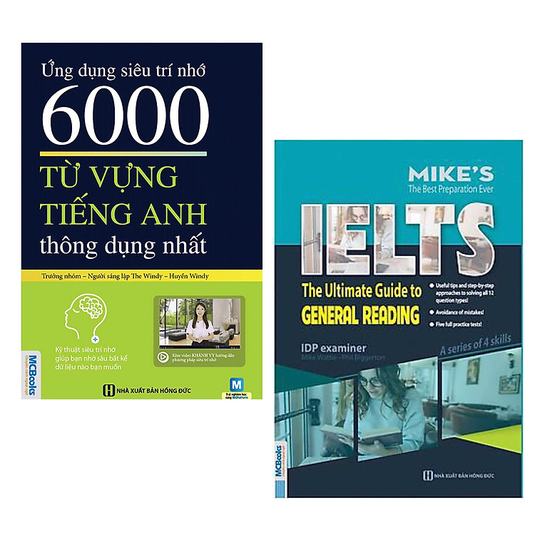 - Combo bao gồm 2 cuốn sách: “Ứng Dụng Siêu Trí Nhớ – 6000 Từ Vựng Tiếng Anh Thông Dụng Nhất” và “The Ultimate Guide To General Reading”.