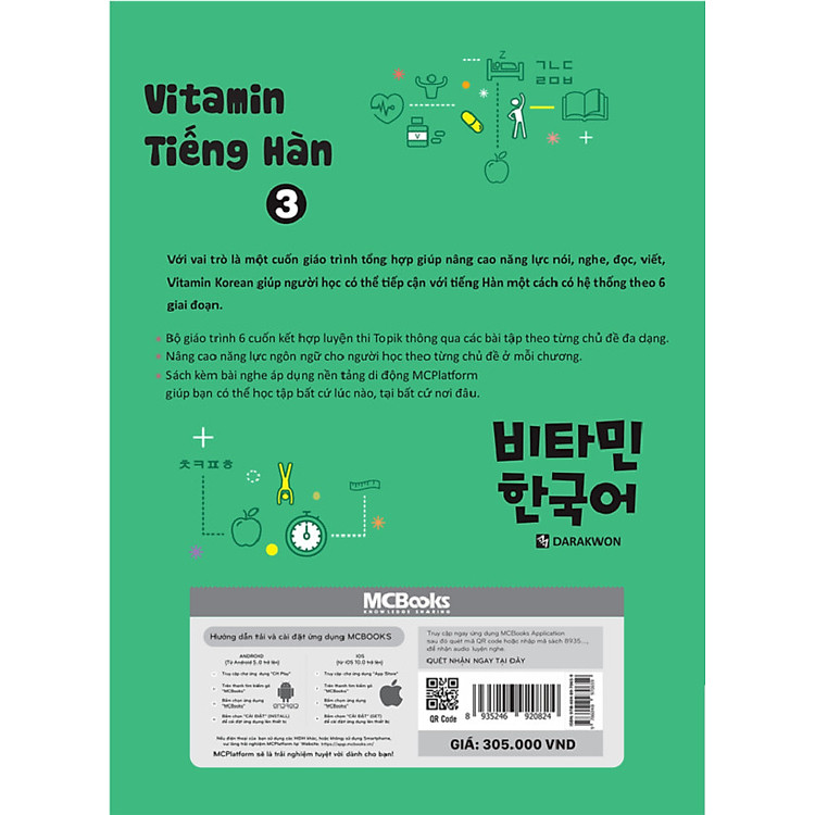 - Tên sản phẩm: Vitamin tiếng Hàn 3, kèm bộ tài liệu học tiếng Hàn online và ứng dụng MCBooks.