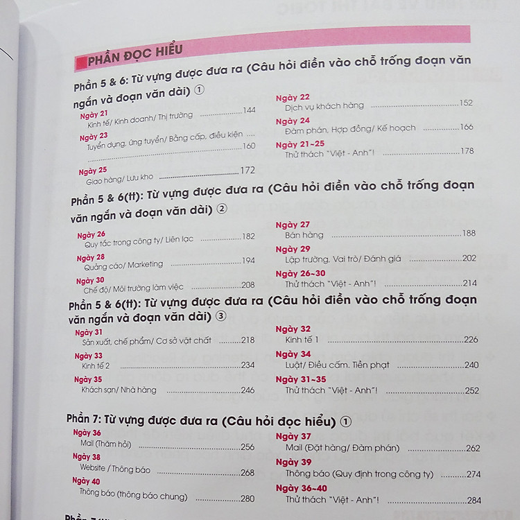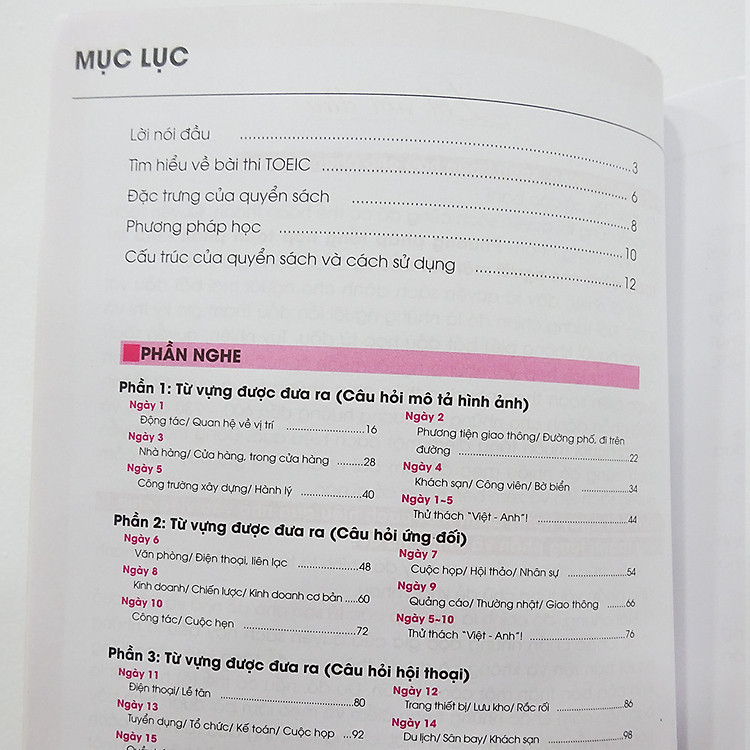 Và dĩ nhiên đây là quyển sách dành cho người mới bắt đầu với TOEIC. Đối tượng chính đó là những người lần đầu tham gia kì thi và những người không biết bắt đầu học từ đâu. Tuy nhiên, quyển sách cũng rất thích hợp với những người muốn “phục thù”. Quyển sách được biên soạn theo phương thức chia những từ và cụm từ thành từng phần dành cho những đối tượng hướng đến 600 ~ 730 điểm, và sách cũng có nhiều mẹo để làm bài nhanh. Và giờ đây hãy cầm quyển sách lên và xem bên trong có gì nào.