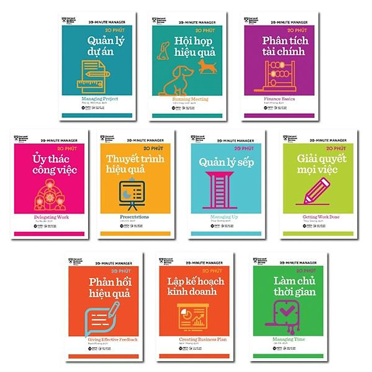 - Bộ sách “HBR 20 Minute Manager” bao gồm 10 cuốn, giúp quản lý thời gian hiệu quả.