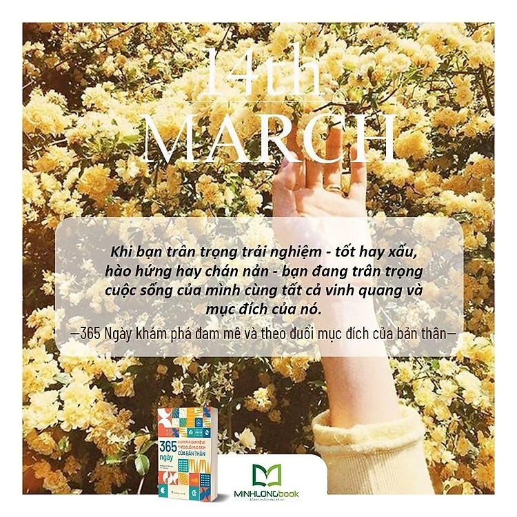 Sách “365 Ngày Khám Phá Đam Mê Và Theo Đuổi Mục Đích Của Bản Thân” là một tài liệu quý giá dành cho những ai đang tìm kiếm động lực và hướng đi trong cuộc sống. Tại Minh Long Book, sản phẩm này không chỉ mang đến kiến thức sâu sắc mà còn là nguồn cảm hứng để bạn khám phá bản thân và theo đuổi những giấc mơ của mình.