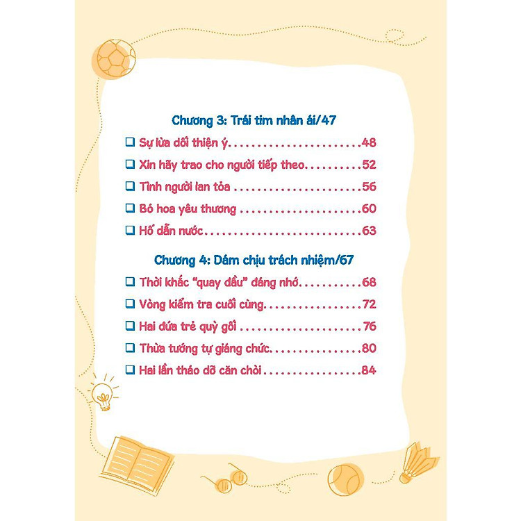 Bộ sách được chia thành nhiều phần, mỗi phần tập trung vào một khía cạnh quan trọng trong quá trình trưởng thành. Từ việc xây dựng tính kiên trì, chịu khó đến việc phát triển phẩm chất cao thượng như lòng trung thực, trách nhiệm và sự tôn trọng. Những bài học trong sách không chỉ giúp các em nhận thức rõ hơn về bản thân mà còn hướng dẫn các em cách ứng xử trong các tình huống thực tế.