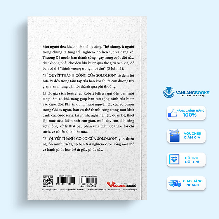 Khi mua Bí Quyết Thành Công Của Solomon tại Văn Lang Official Store, bạn không chỉ nhận được một cuốn sách chất lượng mà còn được trải nghiệm dịch vụ tận tâm và chuyên nghiệp. Văn Lang cam kết mang đến cho bạn sản phẩm chính hãng, giá cả hợp lý cùng nhiều chương trình khuyến mãi hấp dẫn. Hãy để cuốn sách này đồng hành cùng bạn trên hành trình khám phá và chinh phục thành công!