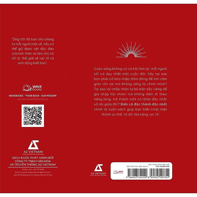 Sách “Biến Cô Độc Thành Độc Nhất” là một tác phẩm nổi bật của AZ Việt Nam – thương hiệu Wavebooks, được phát hành và phân phối chính thức qua Gooda Official. Với mã SKU 9786043654240 và mã công ty 8935325007354, cuốn sách hứa hẹn sẽ mang đến cho độc giả những trải nghiệm thú vị và bổ ích.