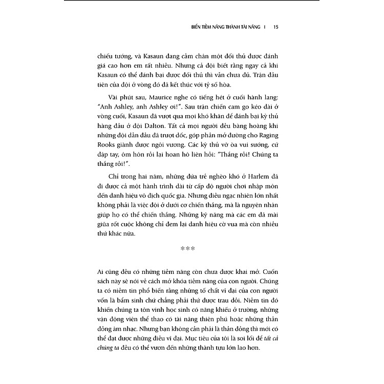 “Biến Tiềm Năng Thành Tài Năng” không chỉ mang lại cho bạn cái nhìn mới mẻ về bản thân mà còn khuyến khích người đọc khám phá và phát huy những khả năng tiềm ẩn của mình. Cuốn sách hướng tới tất cả mọi người, từ học sinh sinh viên cho đến những người đã bước chân vào thị trường lao động, giúp họ nhận ra rằng sự thành công không chỉ đến từ năng khiếu mà còn từ quá trình rèn luyện không ngừng.