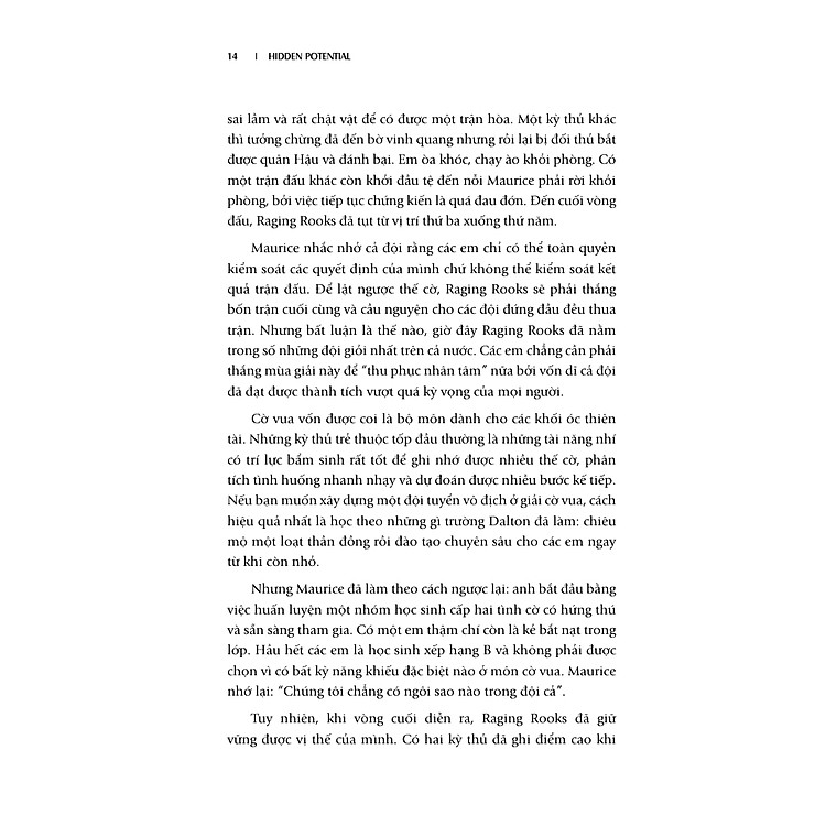 Trong cuốn sách này, Adam Grant đã thách thức quan niệm truyền thống rằng những tố chất vĩ đại của con người là bẩm sinh. Ông lập luận rằng, trái ngược với niềm tin phổ biến, tài năng không chỉ là kết quả của di truyền mà còn là sản phẩm của sự rèn luyện, nỗ lực và sự kiên trì. Grant đưa ra những nghiên cứu khoa học và câu chuyện thực tế minh họa cho việc bất kỳ ai cũng có thể phát triển tiềm năng của mình thông qua sự học hỏi và trau dồi kỹ năng.