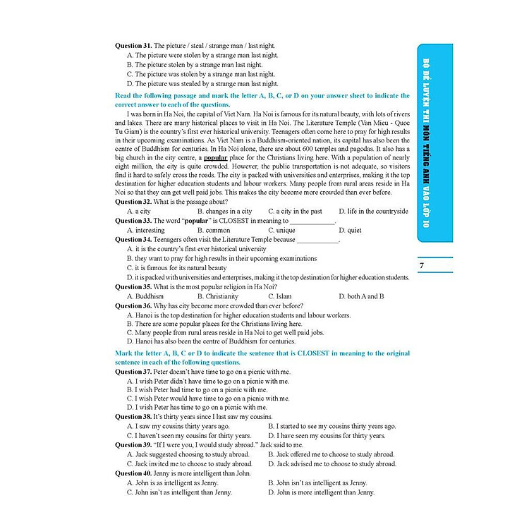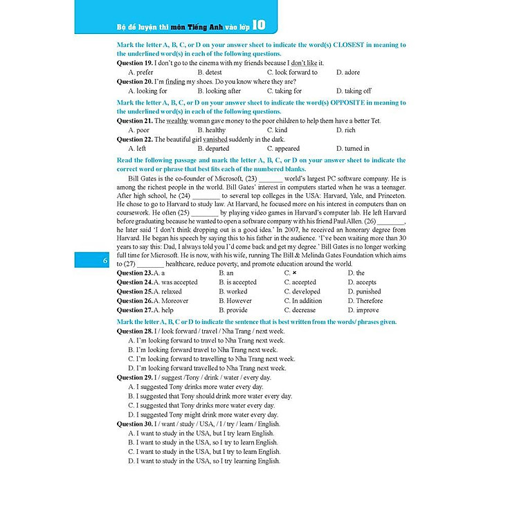Bộ Đề Luyện Thi Môn Tiếng Anh Vào Lớp 10