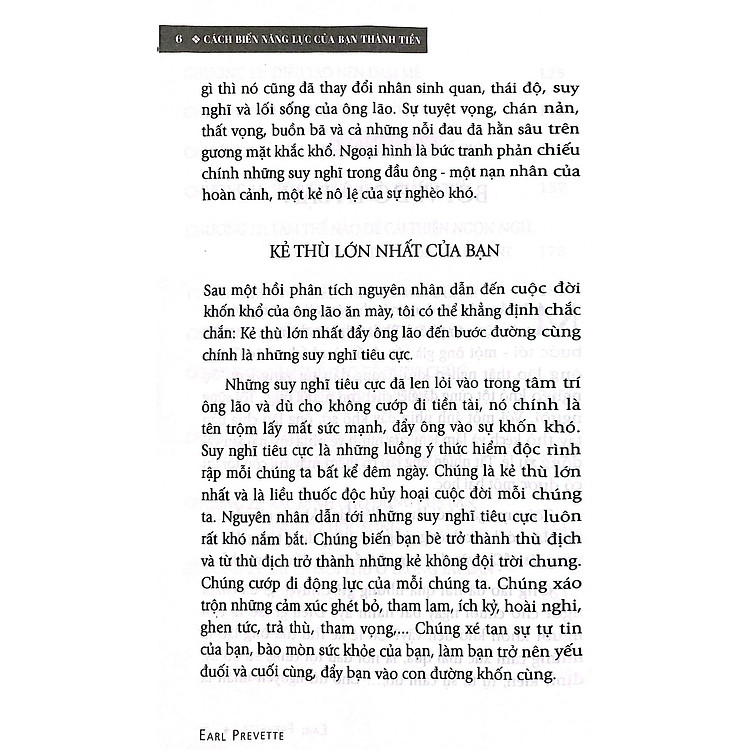 Cách Biến Năng Lực Của Bạn Thành Tiền của tác giả Earl Prevette là một cuốn sách cực kỳ hữu ích dành cho những ai muốn chuyển hóa năng lực cá nhân thành thu nhập thực tế. Earl Prevette, một nhà bán hàng thành công và là tác giả của nhiều tác phẩm bestseller tại Mỹ, đã tổng hợp những kinh nghiệm quý báu của mình trong cuốn sách này. Ông không chỉ là một chuyên gia trong lĩnh vực bán hàng mà còn là người có nền tảng vững chắc với 32 khóa học về luật và nhiều chứng chỉ khác.