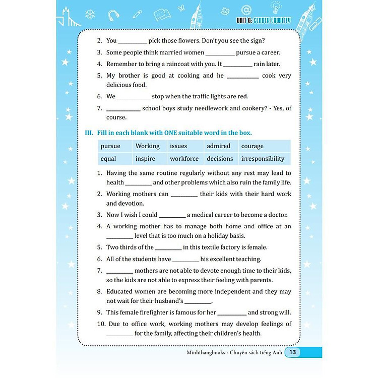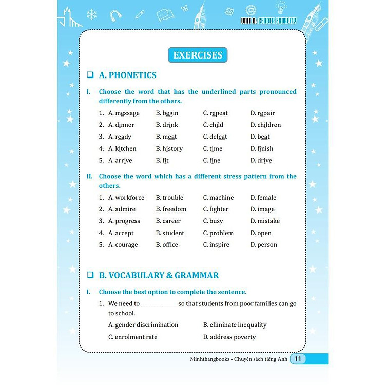 Bộ sách “Chinh phục ngữ pháp và bài tập tiếng Anh” là một tài liệu học tập hữu ích dành cho học sinh từ lớp 6 đến lớp 12. Được biên soạn theo khung chương trình Tiếng Anh hiện hành đang được giảng dạy tại các trường Trung học cơ sở và Trung học phổ thông, cuốn sách này nhằm mục tiêu giúp học sinh nắm vững các cấu trúc ngữ pháp cũng như thực hành các bài tập cần thiết để củng cố kiến thức.