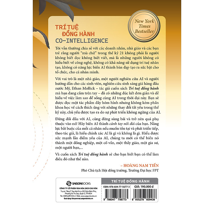 Không chỉ cung cấp kiến thức, “Co – Intelligence – Trí Tuệ Đồng Hành – Kỷ Nguyên Sống Và Làm Việc Cùng AI” còn truyền cảm hứng mạnh mẽ cho độc giả. Đây là lựa chọn tuyệt vời cho những ai muốn tìm nguồn động lực mới. Hãy tham khảo ngay bảng giá bên dưới để mua sách dễ dàng và tiết kiệm hơn.”