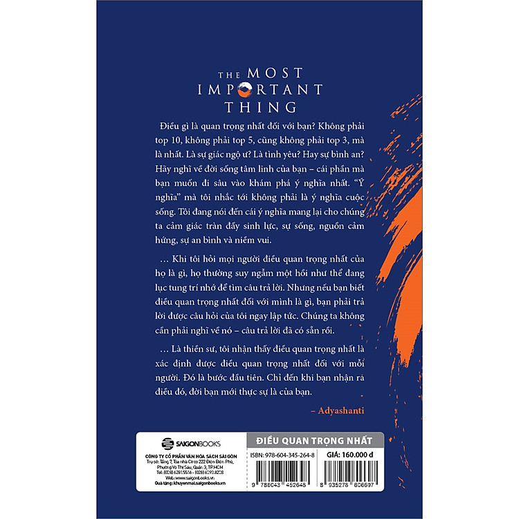 ĐIỀU QUAN TRỌNG NHẤT là một tác phẩm mang đậm dấu ấn văn hóa và tâm linh, khai thác những câu chuyện cuộc sống từ những cơ duyên bất ngờ. Sách không chỉ đơn thuần là một cuốn sách mà còn là một hành trình khám phá những giá trị cốt lõi của cuộc sống, giúp người đọc nhận diện và trân trọng từng khoảnh khắc quý giá.