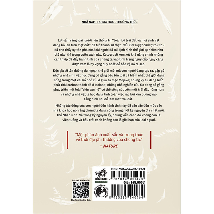 Lời sấm rằng loài người nên thông trị “toàn bộ trái đất và mọi sinh vật đang bò lan trên mật đất” đã trở thành sự thật. Nếu đợt tuyệt chủng thứ sáu đã cho thấy sự tàn phá của loài người đã tái định hình hành tinh, thì cuốn sách “Dưới bầu trời trắng” chính là một lời nhắc nhở mạnh mẽ về trách nhiệm mà chúng ta phải gánh vác.