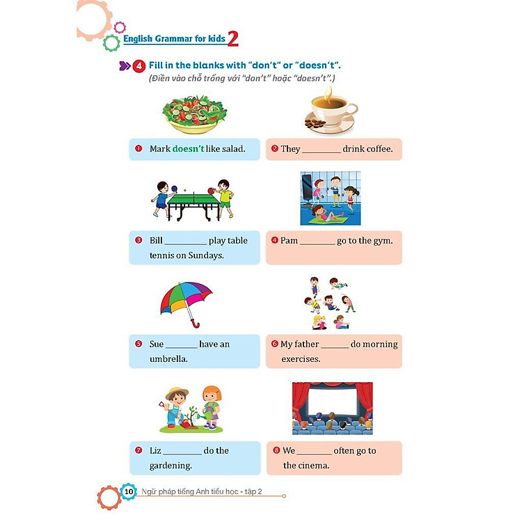 Trong tập 2 này, các chủ điểm ngữ pháp được trình bày một cách hệ thống và rõ ràng, giúp trẻ em dễ dàng tiếp cận và ghi nhớ. Sách còn kèm theo bài tập thực hành đa dạng, phong phú, giúp các em có thể áp dụng lý thuyết đã học vào thực tế. Đặc biệt, mỗi bài tập đều có hình ảnh minh họa sinh động, góp phần kích thích sự hứng thú và sáng tạo trong quá trình học tập của trẻ.