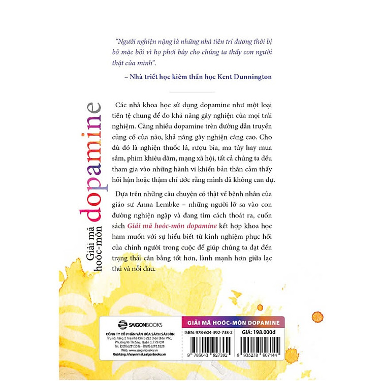 Giải Mã Hoóc-Môn Dopamine của tác giả Anna Lembke là một tác phẩm đầy sâu sắc và hấp dẫn, giúp độc giả hiểu rõ hơn về hoóc-môn dopamine – một trong những yếu tố quan trọng quyết định hành vi và cảm xúc của con người. Được xuất bản bởi Saigon Books vào tháng 5 năm 2023, cuốn sách này không chỉ mang đến cái nhìn khoa học mà còn cung cấp những kinh nghiệm thực tiễn về cách mà dopamine ảnh hưởng đến cuộc sống hàng ngày của chúng ta.