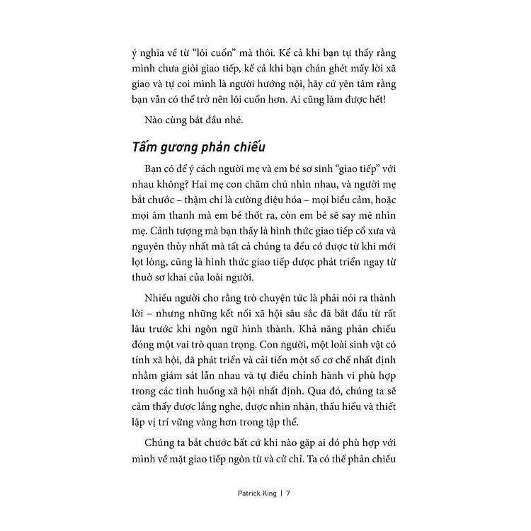 Cuốn sách này xoay quanh các chủ đề chính như cách tạo ấn tượng đầu tiên tốt, cách xử lý tình huống khó khăn trong giao tiếp và kỹ năng pha trò một cách tự nhiên, giúp bạn trở thành một người giao tiếp hấp dẫn và quyến rũ. Tác giả Patrick King đã sử dụng những ví dụ thực tế và bài tập cụ thể để hướng dẫn người đọc, giúp bạn dễ dàng áp dụng vào cuộc sống hàng ngày.