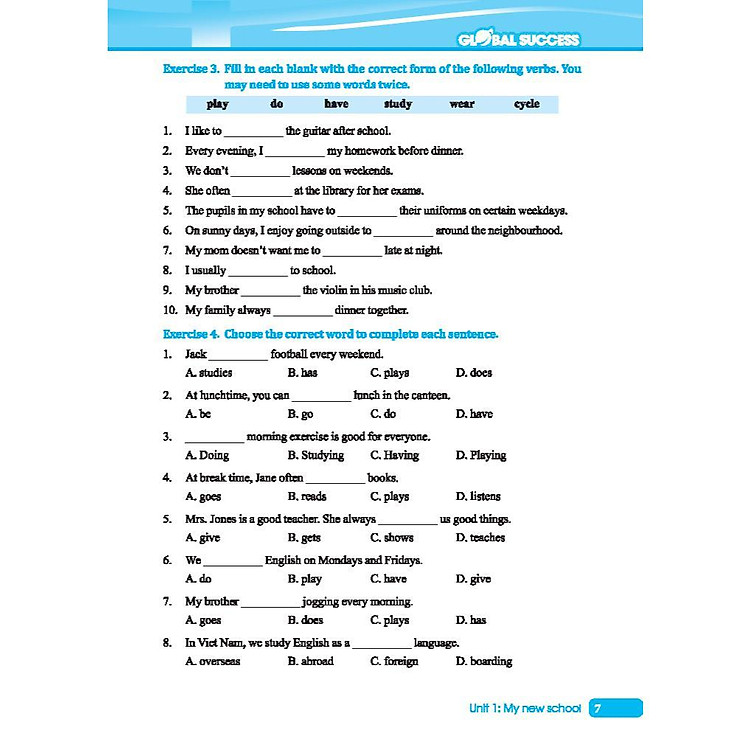 Global Success Bài Tập Cuối Tuần Tiếng Anh Lớp 6 – Tập 1 – Có Đáp Án