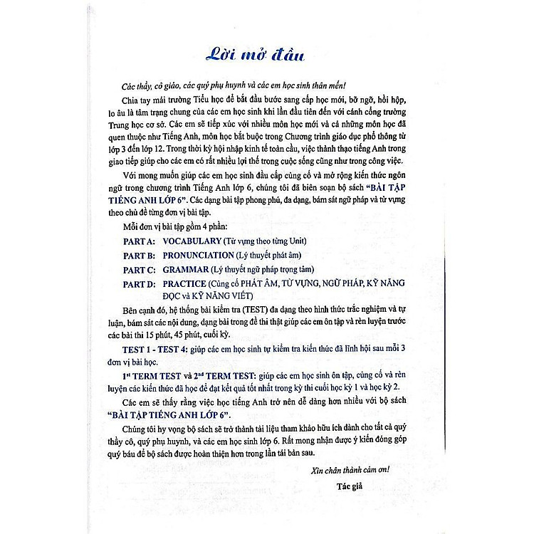 Việc sử dụng cuốn sách này sẽ giúp học sinh phát triển các kỹ năng nghe, nói, đọc và viết tiếng Anh một cách toàn diện. Ngoài ra, việc làm bài tập thường xuyên sẽ giúp các em tự tin hơn trong việc sử dụng ngôn ngữ Anh trong giao tiếp hàng ngày. Từ đó, các em sẽ có được nền tảng vững chắc để tiếp tục học tập và phát triển trong các cấp học tiếp theo.