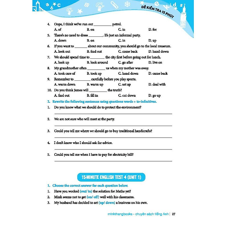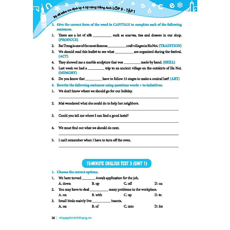 “Bộ đề kiểm tra định kỳ 4 kỹ năng nghe – nói – đọc – viết Tiếng Anh lớp 9” là tài liệu thiết yếu dành cho học sinh lớp 9, giúp các em rèn luyện các kỹ năng quan trọng trong việc học Tiếng Anh. Bộ sách này không chỉ cung cấp cho học sinh những đề thi mẫu đa dạng mà còn giúp các em làm quen với cấu trúc bài thi và các dạng đề khác nhau.