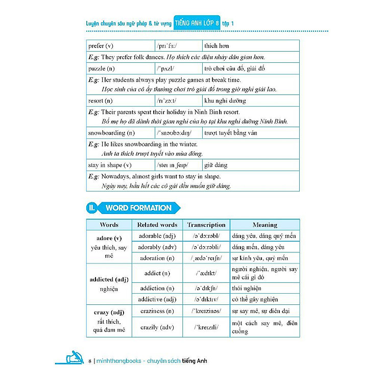 Sách “GLOBAL SUCCESS – Luyện chuyên sâu ngữ pháp và từ vựng tiếng Anh lớp 8 – Tập 1” là một tài liệu học tập tuyệt vời dành cho học sinh lớp 8, được biên soạn bởi tác giả Minh Thắng. Nội dung sách được xây dựng bám sát chương trình giảng dạy của Bộ Giáo dục và Đào tạo, giúp các em học sinh nắm vững kiến thức ngữ pháp và từ vựng cần thiết để phục vụ cho việc học tập tiếng Anh hiệu quả.