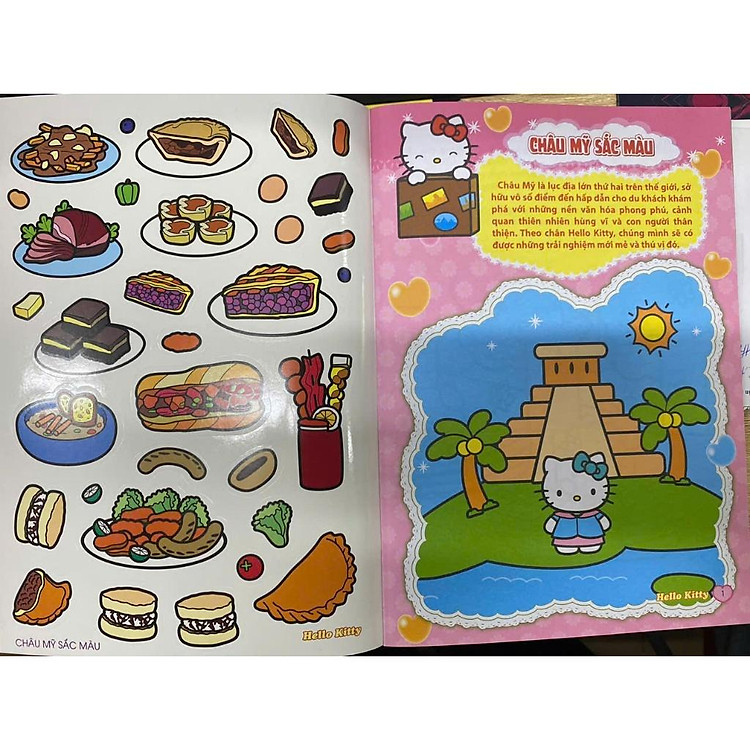 Sách không chỉ đơn thuần là một cuốn sách tô màu, mà còn được thiết kế để trẻ em có thể dán hình sticker, giúp các em không chỉ phát triển khả năng sáng tạo mà còn rèn luyện sự khéo léo và tư duy logic. Với những nhân vật đáng yêu như Hello Kitty, các bé sẽ càng thêm hứng thú khi tham gia vào hành trình du lịch khám phá các phong cảnh và văn hóa đa dạng của Châu Mỹ.