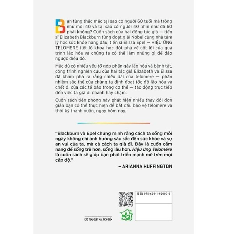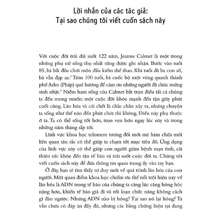 - Tác giả: Tiến sĩ Elizabeth Blackburn, đồng tác giả đoạt giải Nobel sinh lý và y khoa năm 2009.