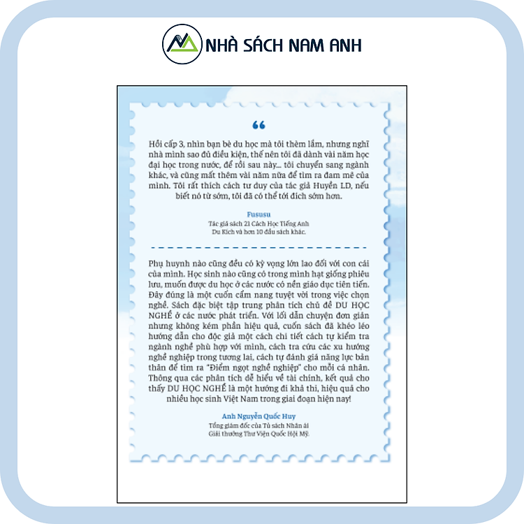 Cuốn sách không chỉ là một nguồn cảm hứng mà còn là một tài liệu tham khảo thực tế cho tất cả những ai đang băn khoăn về việc du học. Với phong cách viết gần gũi, chân thành và dễ hiểu, Huyền LD đã mang đến cho độc giả cái nhìn rõ nét hơn về những điều cần chuẩn bị trước khi bước ra thế giới. Đặc biệt, cuốn sách còn giúp bạn nhận ra rằng, dù có khó khăn đến đâu, nếu bạn kiên trì và biết cách quản lý chi phí, giấc mơ du học của bạn vẫn hoàn toàn có thể trở thành hiện thực.