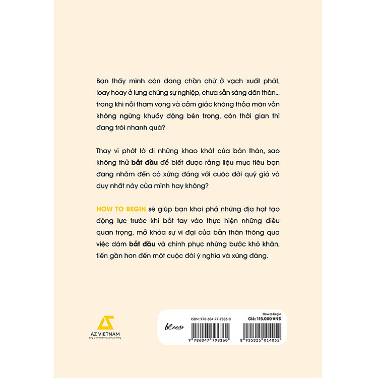 - Tựa sách: “HOW TO BEGIN: Bắt Đầu Làm Điều Gì Đó Có Ý Nghĩa”