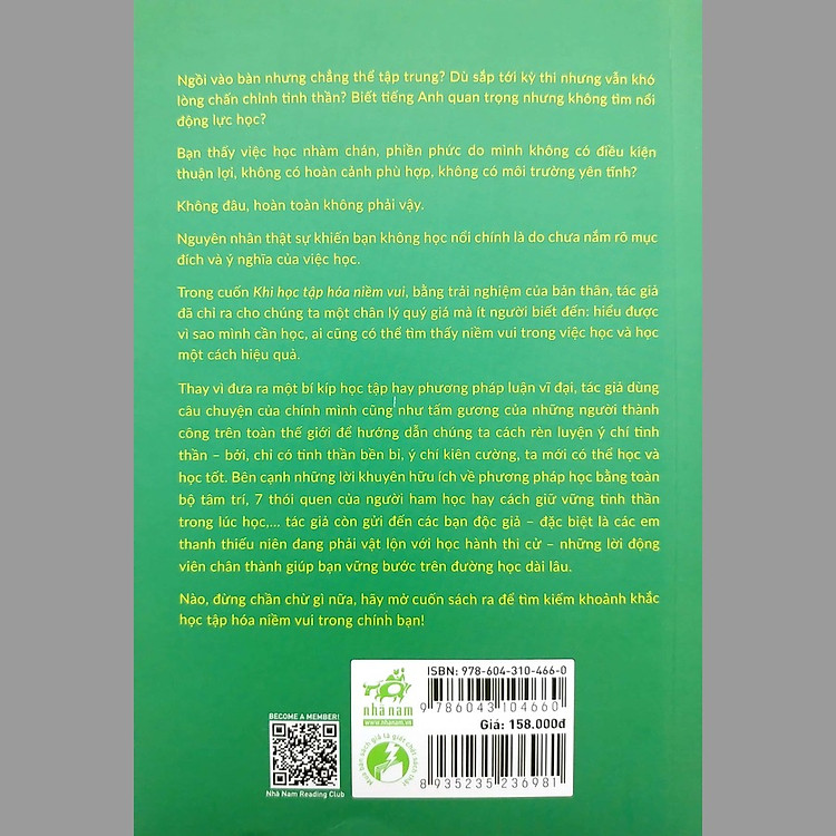 Bạn có bao giờ cảm thấy ngồi vào bàn học mà không thể tập trung? Dù kỳ thi đang cận kề nhưng bạn vẫn không thể chấn chỉnh tinh thần? Hay bạn biết tiếng Anh rất quan trọng nhưng lại không thể tìm thấy động lực học? Nếu những vấn đề này đang làm bạn lo lắng, thì cuốn sách “Mua Khi Học Tập Hóa Niềm Vui – 7 Thói Quen Giúp Bạn Cải Thiện Khả Năng Học Tập” chính là giải pháp hoàn hảo dành cho bạn.