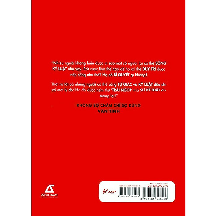 “Không Sợ Chậm Chỉ Sợ Dừng” là một cuốn sách thú vị dành cho những ai đang tìm kiếm động lực và phương pháp để có cuộc sống kỷ luật hơn. Cuốn sách giúp bạn hiểu rõ hơn về tâm lý của những người thành công, từ đó áp dụng vào cuộc sống hàng ngày. Tại Tiki Trading, bạn có thể dễ dàng sở hữu bản thông thường của cuốn sách này.