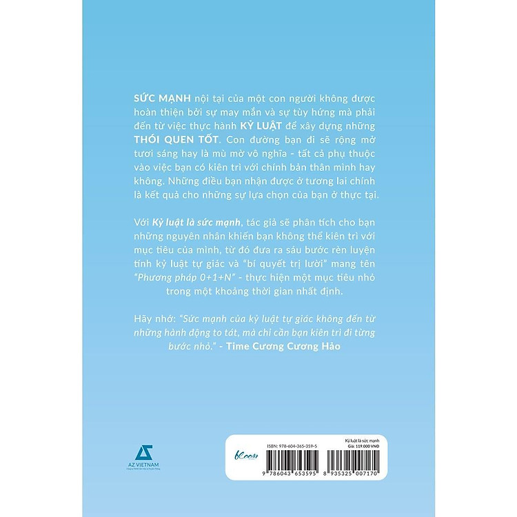 Kỷ Luật Là Sức Mạnh là một tác phẩm nổi bật của tác giả Time Cương Cương Hảo, được dịch giả Shen mang đến với người đọc. Cuốn sách này không chỉ đơn thuần là một cuốn sách về tri thức, mà còn là một nguồn động lực mạnh mẽ cho bất kỳ ai đang tìm kiếm cách làm chủ cuộc sống của mình. Với 224 trang nội dung phong phú và sâu sắc, cuốn sách được xuất bản bởi Bloom Books và phát hành bởi Nhà xuất bản Thế Giới, hứa hẹn sẽ là một người bạn đồng hành tuyệt vời cho những ai đang nỗ lực xây dựng kỷ luật trong cuộc sống.