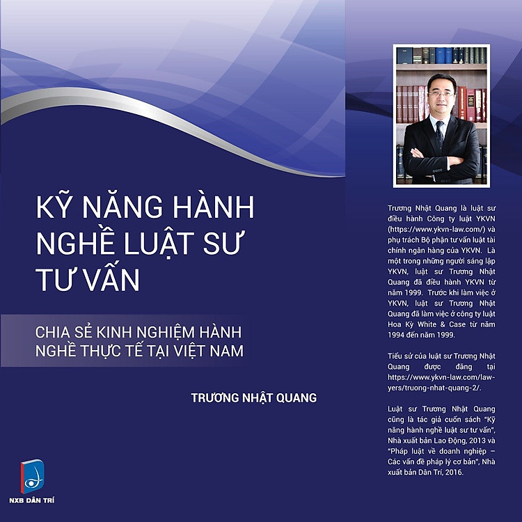Cuốn sách “Kỹ Năng Hành Nghề Luật Sư Tư Vấn” do tác giả Trương Nhật Quang biên soạn, là một ấn phẩm quan trọng trong lĩnh vực pháp lý, được phát hành bởi Nhà xuất bản Dân Trí vào năm 2022. Với tổng số 384 trang và kích thước 16×24 cm, cuốn sách này cung cấp một cái nhìn sâu sắc về các kỹ năng cần thiết cho các luật sư trong vai trò tư vấn.