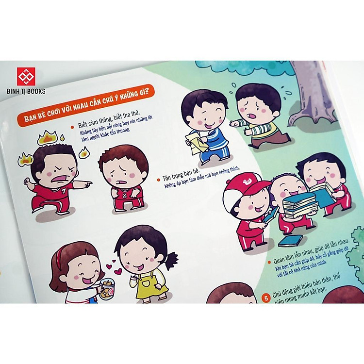 Bộ sách gồm 5 cuốn, mỗi cuốn mang đến một chủ đề riêng biệt, giúp trẻ nhận thức về các giá trị sống, từ việc giao tiếp, chia sẻ đến cách giải quyết vấn đề. Với hình ảnh minh họa sinh động và ngôn ngữ dễ hiểu, các bé sẽ dễ dàng tiếp thu và áp dụng những bài học này vào thực tế. Điều này không chỉ giúp trẻ phát triển tư duy mà còn tạo nền tảng vững chắc cho tương lai của các bé.