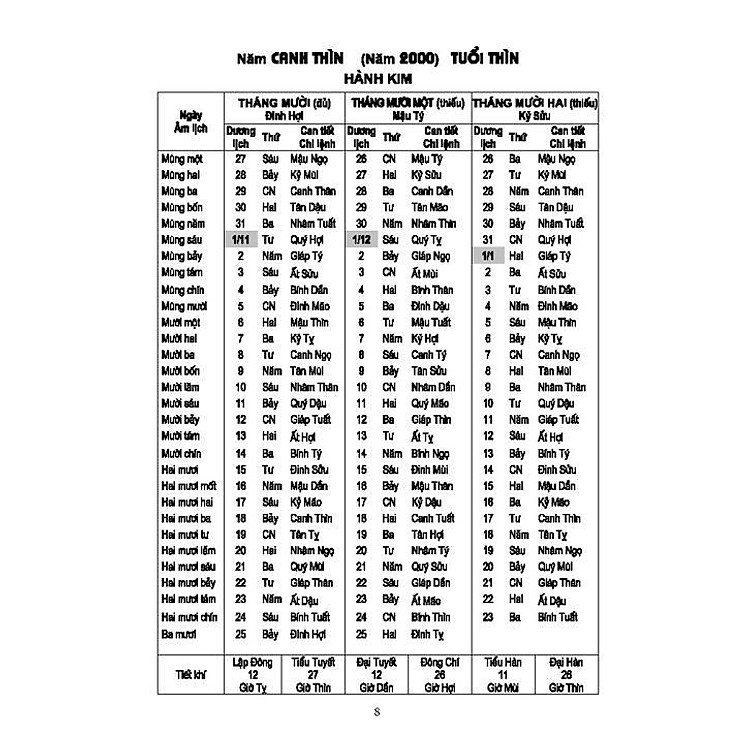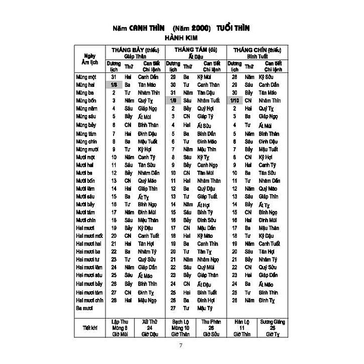 Các thông tin khác: Lịch Vạn Niên 2000 – 2120