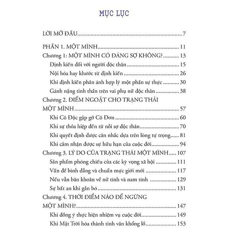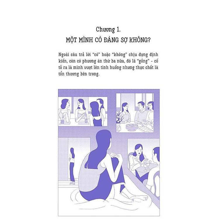 Mình mua sách về ban đầu vì tò mò thôi, ko ngờ đọc 1 lèo hết cả cuốn trong 1 ngày. Phần một phân tích về sự đáng sợ khi một mình, mình thấy hơi dài dòng. Những phần sau đọc rất cuốn. Những bạn nào mới kết thúc một mối quan hệ hoặc đang lúng túng trong việc duy trì một mối quan hệ có thể đọc để chữa lành nhé