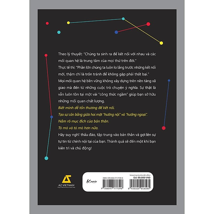 Cuốn sách cung cấp một cái nhìn sâu sắc về nghệ thuật kết nối trong thời đại số, nơi mà việc xây dựng mối quan hệ không chỉ diễn ra qua các cuộc gặp mặt trực tiếp mà còn thông qua các nền tảng trực tuyến. Những chiến lược và mẹo mà Alisa Grafton chia sẻ sẽ giúp bạn biến những mối quan hệ online thành những mối quan hệ offline bền vững và có giá trị.