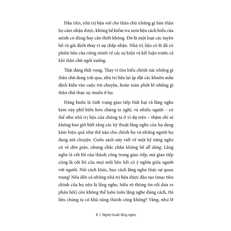 Trong “Nghệ Thuật Lắng Nghe”, tác giả mang đến cho bạn những nguyên tắc cơ bản của việc lắng nghe một cách hiệu quả. Bạn sẽ học cách nhận diện cảm xúc của người khác, từ đó phát triển khả năng thấu cảm – một yếu tố cần thiết để xây dựng lòng tin trong mọi mối quan hệ. Cuốn sách cũng cung cấp những bài tập thực hành giúp bạn rèn luyện kỹ năng này một cách tự nhiên và hiệu quả, giúp bạn trở thành một người lắng nghe tốt hơn.