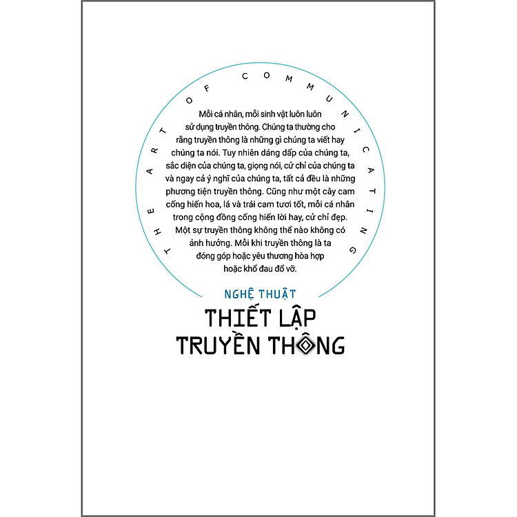 Chúng ta thường cho rằng truyền thông chỉ đơn giản là những gì chúng ta viết hay nói. Tuy nhiên, cuốn sách “Nghệ Thuật Thiết Lập Truyền Thông” sẽ giúp bạn hiểu rõ hơn về khái niệm này. Dáng dấp của chúng ta, sắc diện của chúng ta, giọng nói, cử chỉ của chúng ta và ngay cả những suy nghĩ mà chúng ta truyền tải đều đóng vai trò quan trọng trong việc thiết lập giao tiếp hiệu quả.
