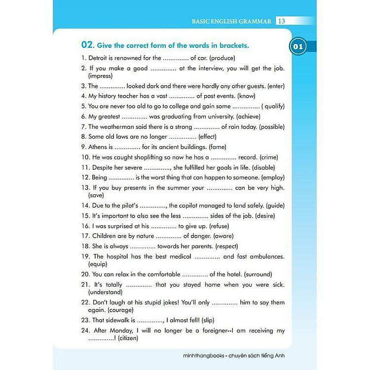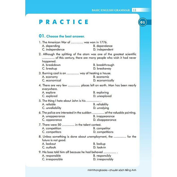 Sách bao gồm các chủ đề như danh từ, động từ, tính từ, trạng từ và nhiều khía cạnh khác của ngữ pháp tiếng Anh. Mỗi chủ điểm đều được trình bày rõ ràng, dễ hiểu và kèm theo ví dụ minh họa cụ thể, giúp người học không chỉ nắm vững lý thuyết mà còn ứng dụng vào thực tiễn giao tiếp hàng ngày. Đây là một công cụ lý tưởng cho những người mới bắt đầu học tiếng Anh hoặc muốn củng cố lại kiến thức cơ bản.